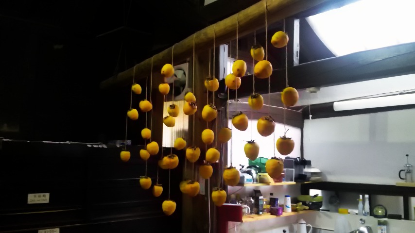 オーナーとレストラン淳のシェフが皮剥いて、干し柿を作りました。